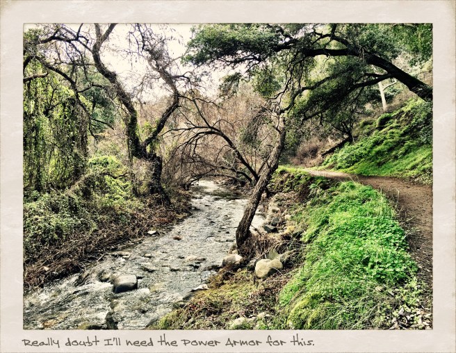 Pfft. I could bust through this creek easy. No need for Power Armor. I just need a good running start!